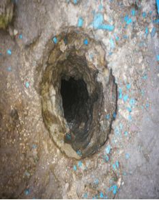在拆除開(kāi)挖的屋面上發(fā)現(xiàn),粘貼時(shí)采用的是濕鋪法工藝(即用素水泥漿粘貼工藝),卷材搭接不可靠,施工工藝不規(guī)范等,屋面雨水通過(guò)質(zhì)量缺陷部位滲漏至底部,防水層與屋面結(jié)構(gòu)板之間的泡沫混凝土構(gòu)造體系內(nèi)存在松散多孔空間,滲漏水能夠在構(gòu)造層內(nèi)大量集聚、蔓延擴(kuò)散,造成大面擴(kuò)散性滲漏水(竄水現(xiàn)象)。