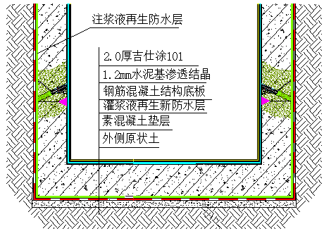 1. 先將地下室內部的滲水排除,從地下室內部鏟除施工縫部位抹灰層,將基層打磨清理干凈;