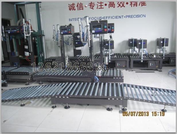 稱重灌裝機 20-300kg 桶裝稱重灌裝專用 【特點】1、灌裝方式:自上而下灌裝。 2、控制方式:手動設定灌裝方式,微動開關控制。3、輸送方式:無發動機滾筒輸送。4.自帶數顯灌裝量功能,可完成多種灌裝量 環境。5.自動去皮,按凈重灌裝功能。6、自帶抽真空功能,避免滴漏。7.具有手動和自動微動開關控制系統功能。8.雙速控制功能,防止飛濺。9、具有應急處理功能,避免誤操