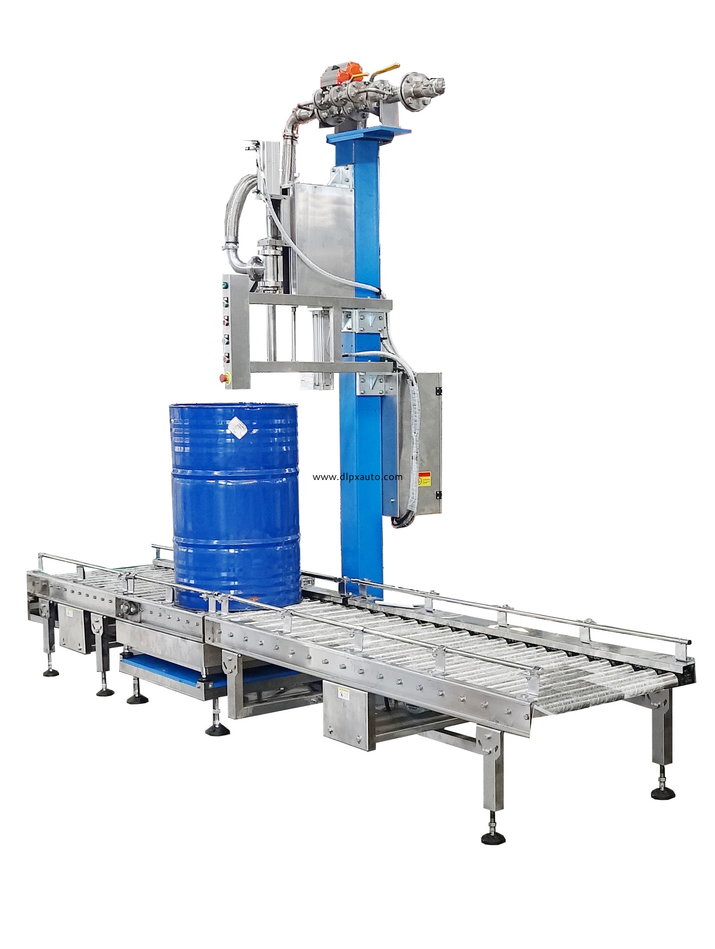 本機專門針對100-300kg的液體桶包裝而設計的智能化包裝系統,下潛灌裝,采用高精度稱重傳感器進行稱重灌裝,可自動設定液體灌裝機,自動進行毛重、凈重灌裝。具有操作方便,生產效率高,適用范圍廣等特點。適用于涂料、化工產品以及化工中間體的灌裝。它產能穩定,操作簡單。