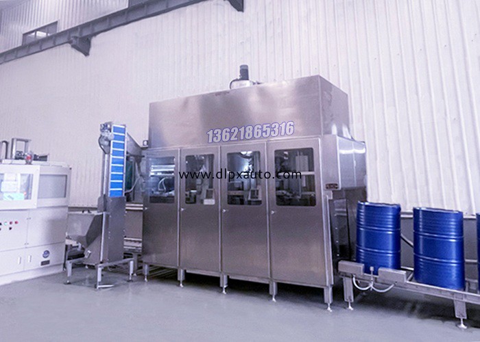 200L-D全自動系列,可實現人工上桶,自動輸送進桶,自動對口松蓋,自動定量灌裝,自動擰蓋,自動檢測擰蓋,重桶自動出桶的自動化生產流程。D系列采用機電與視覺相結合的對口技術,在空桶至松蓋工位時,自動轉桶對口,完成松蓋,在重桶至擰蓋工位時,采用視覺校正技術,自動擰蓋后出桶。D系列自動化程度高,通常需要自動理蓋、蓋外蓋、貼標、碼垛、纏繞等功能,故進出桶輥道較長,占地面積較大。可選配防爆電機,排風抽氣設備,或理蓋機,噴碼打印機,貼標機,碼垛機,纏繞機等周邊設備。