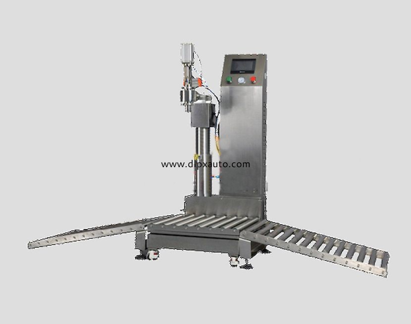 應用案例高灌稱重式灌裝機,原理是由稱重傳感器平臺在PLC的控制下設(shè)定計量.是高精度,高技術(shù)產(chǎn)品.是集機、電、儀一體化的新型機種,它改變了傳統(tǒng)流量計式灌裝機定量精度及無法對較粘液體的計量缺陷,是文明生產(chǎn)和國家明令規(guī)定淘汰杠桿秤后,融稱重與灌裝一體化的理想設(shè)備,灌裝時先去除皮重,操作者只需要將容器放入平臺,桶口對準灌裝咀,此時程序啟動,灌裝咀下降,打開灌裝閥進料, 物料在注入容器時先大量快速灌裝后再慢