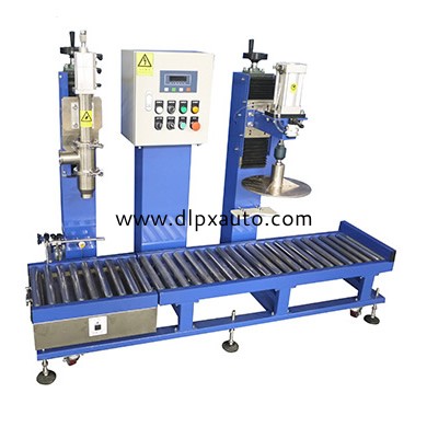 本設(shè)備是20L防爆式平板壓蓋灌裝機(型號YCS-20L)廣泛應(yīng)用于化工、糧食、農(nóng)藥等與液體狀物料相關(guān)的行業(yè),適用在聚氨酯、多元醇、聚醚、聚酯、樹脂、涂料、油漆、油墨、膠粘劑、固化劑、染料、清洗劑、機油、潤滑油、食用油、香精、溶劑、助劑、農(nóng)藥及其他危險性化學(xué)產(chǎn)品等產(chǎn)品中。動作流程:人工將空桶放到秤臺上,,然后點擊啟動按鈕,儀表首先判桶并扣除空桶皮重,灌裝頭下降并插入桶內(nèi)并打開進入快速落料,當(dāng)達到慢進