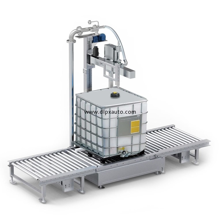 人工將空桶放到空桶暫存區(qū),自動輸送到秤臺上,,然后點擊啟動按鈕,儀表首先判桶并扣除空桶皮重,灌裝頭插入桶內(nèi)打開進入快速落料,當達到慢進料設(shè)定重量時,自動轉(zhuǎn)為慢速落料。當重量達到目標值時停止落料,此時灌裝頭復(fù)位到初始位置,儀表回皮顯示總重,自動輸送到成品暫存區(qū),待叉車取走,整個動作流程結(jié)束。