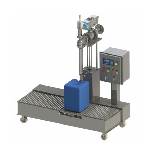 液體灌裝機(jī)主要由儲(chǔ)料斗、灌裝噴槍裝置、防爆控制柜、控制系統(tǒng)、稱重儀表、秤臺(tái)、升降裝置、氣動(dòng)球閥、無(wú)動(dòng)力輸送輥道,不銹鋼機(jī)架、壓蓋裝置等組成。