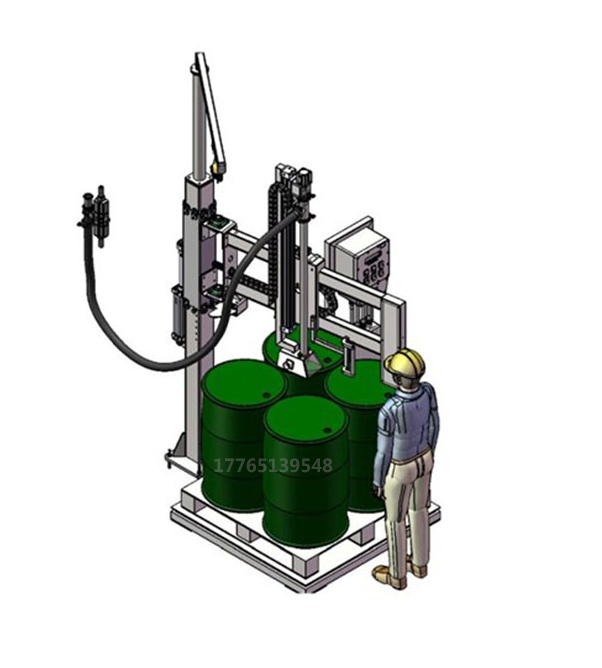 人工操作:人工將桶放在磅臺上,對準桶口后按啟動鍵即可進行灌裝。