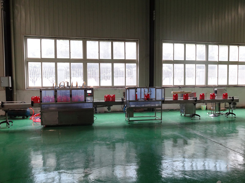 該全自動流水線樹脂灌裝機廣泛應用石化、日化、制藥、食品、農藥、化工等行業的包裝流水線中。可實現灌裝、上蓋、旋蓋、鋁箔封口、貼標、裝