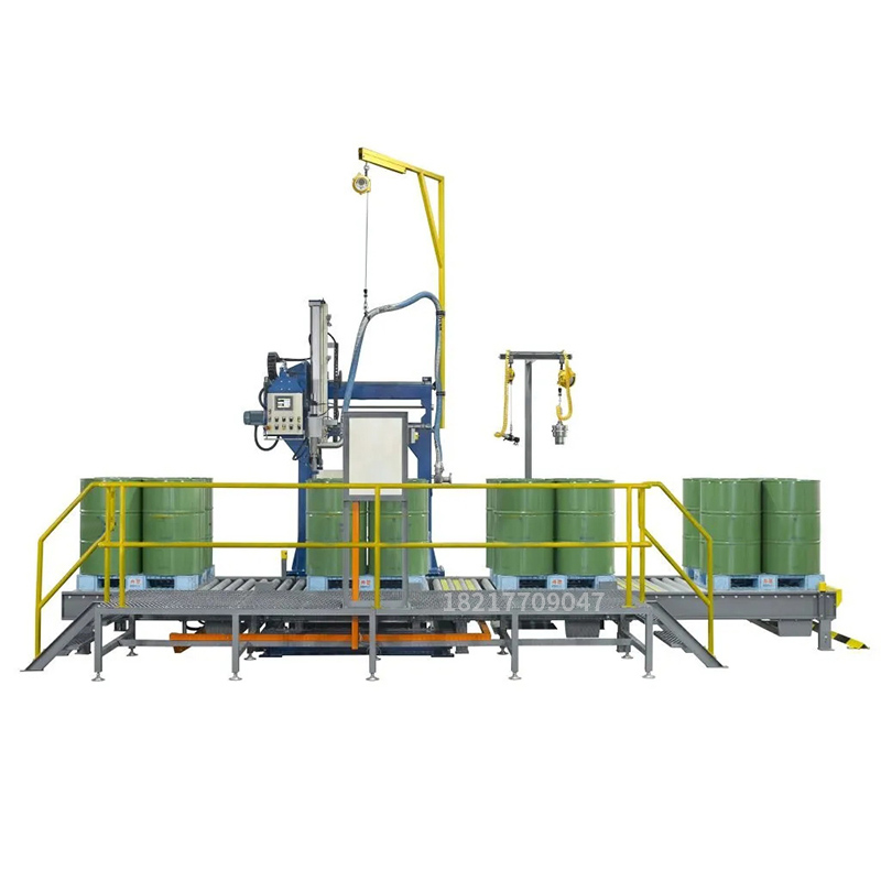 1. 四桶同時灌裝:設(shè)備配備了四個搖臂式灌裝頭,能夠同時對四個200升容器進行灌裝操作,提高生產(chǎn)效率。