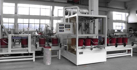 適用產品:潤滑油,涂料,油漆,油墨、潤滑脂、潤滑油、膩子、固化劑、凡士林等等液體以及半流體桶裝定量灌裝。可配套使用自動上桶分桶,自動上蓋壓蓋封蓋,自動碼垛等全自動生產線設備