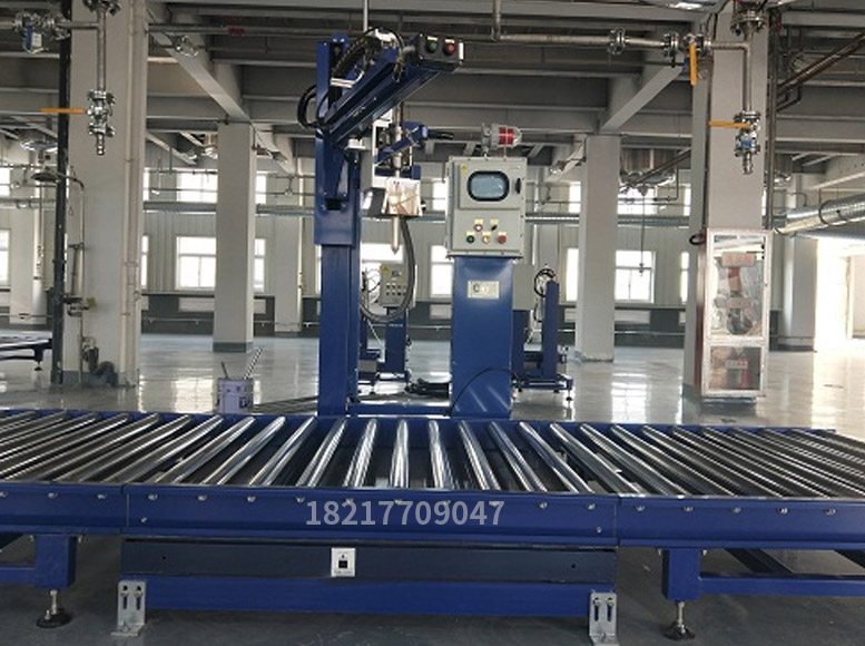 開機--人工放桶至秤臺快速定位對口--系統自動偵測桶定位--灌槍自動插入桶底部--自動去皮自動打開灌槍開始灌裝--大、中、小、微量四段式灌裝--灌槍自動隨頁面自動提升--到達目標值灌槍自動關閉并升至桶外--灌裝完成。