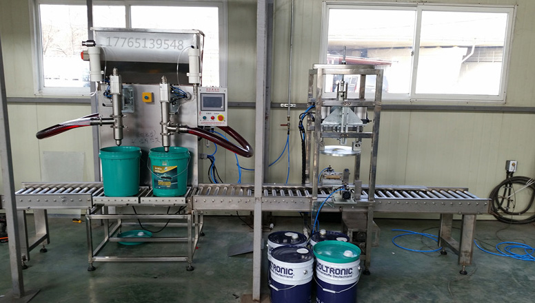 白乳膠液體灌裝機,25千克液面式多用途防爆液體灌裝機設備使用: