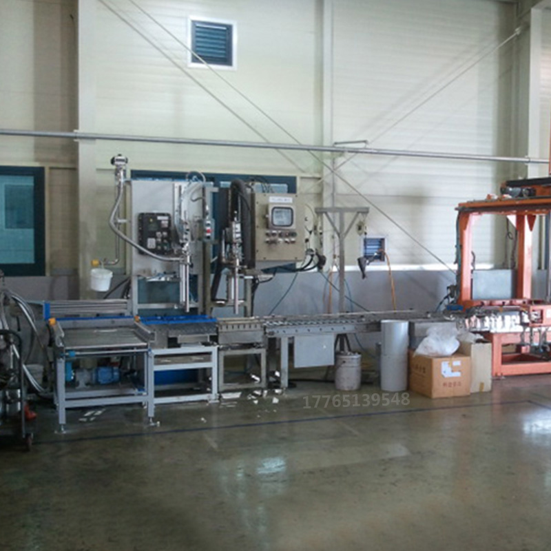 操作流程:  空桶自動輸送 - 空桶撥至稱重區同時自動對桶口  - 空自動除皮  - 自動定量  - 自動推桶至鏈板輸送線 - 自動上蓋同時自動鎖蓋  - 重桶輸送到重桶待提區  - 人工提走即完成